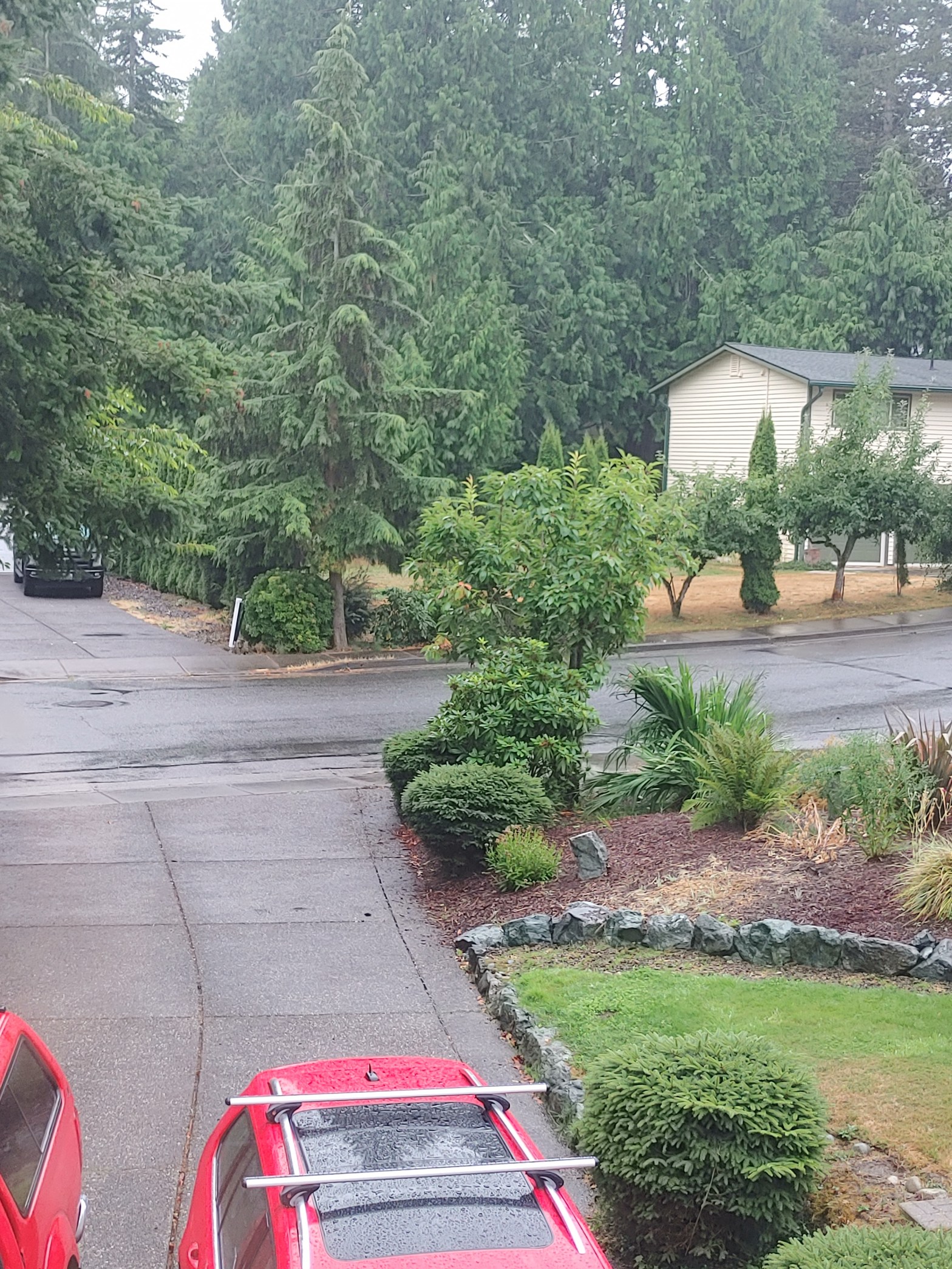 雨は小雨になってきたが、空は「いつでも降りますよ~ん」のどんより空。Garage Saleとはいえ、売り出す物は外に並べるから、あのまま決行していてもいつ雨が降り出すか気が気じゃないし、なんていっても寒い。なんて思いながらいたら、旦那君が誰か来たかRing (セキュリティカメラ)でみてみようっていうので携帯からチェックをしてみた。