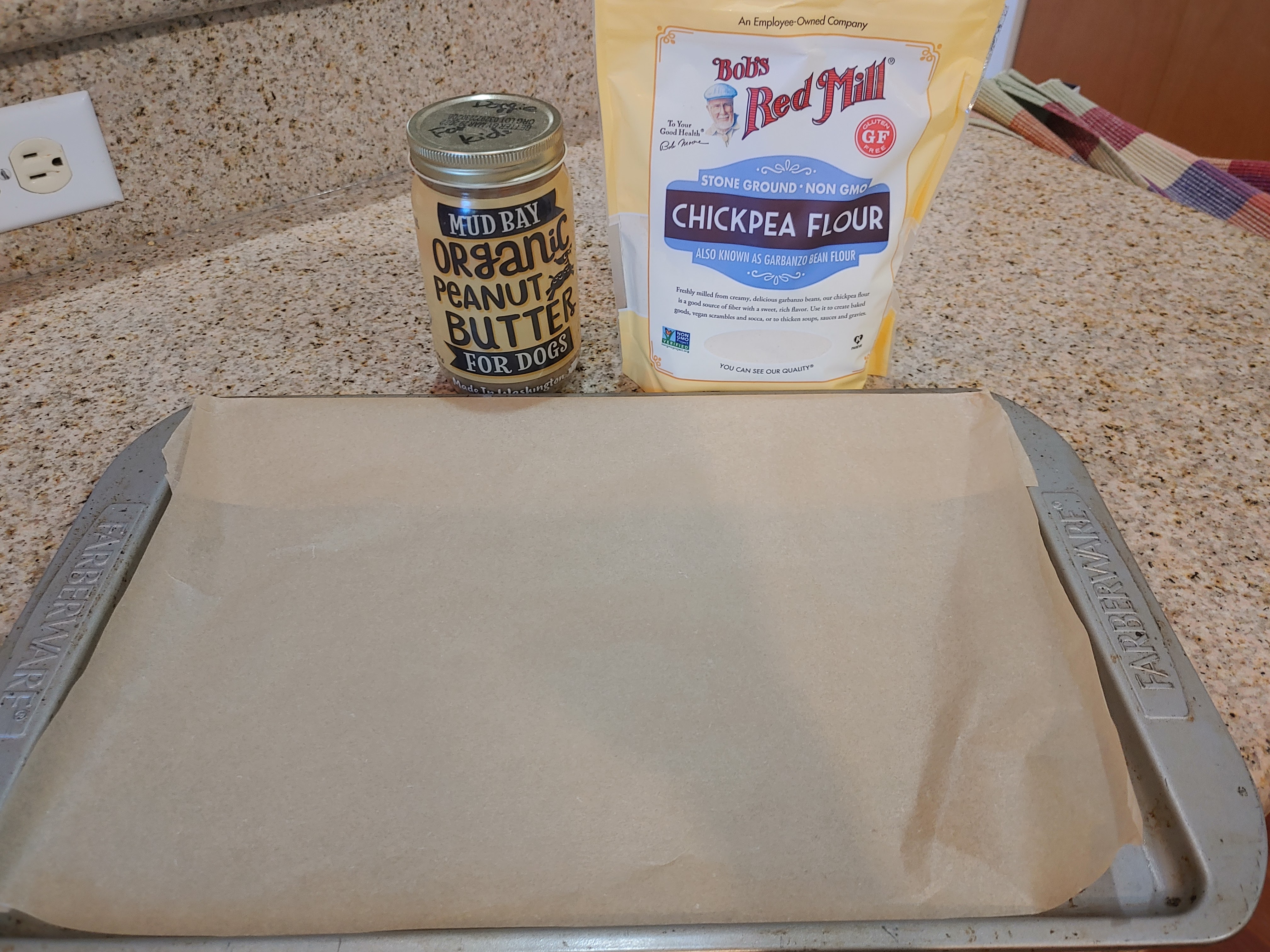 材料はChickpea Flour (Garbanzo Bean Flour) 一袋(454g)とPeanuts Butter (カップ1強)とお湯(カップ2)だけ。