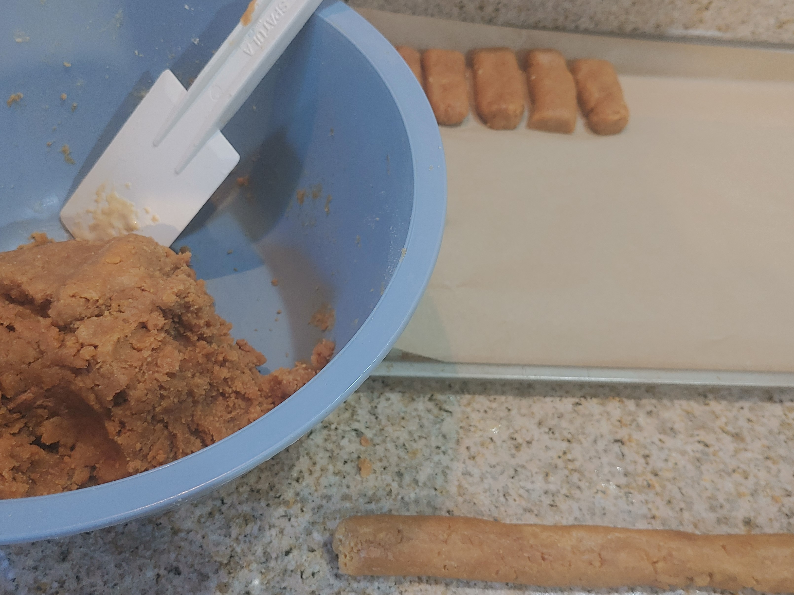今朝も思いつきで「そうだ!ワンコ用のピーナツバタークッキーを作ろう」とガサガサ。