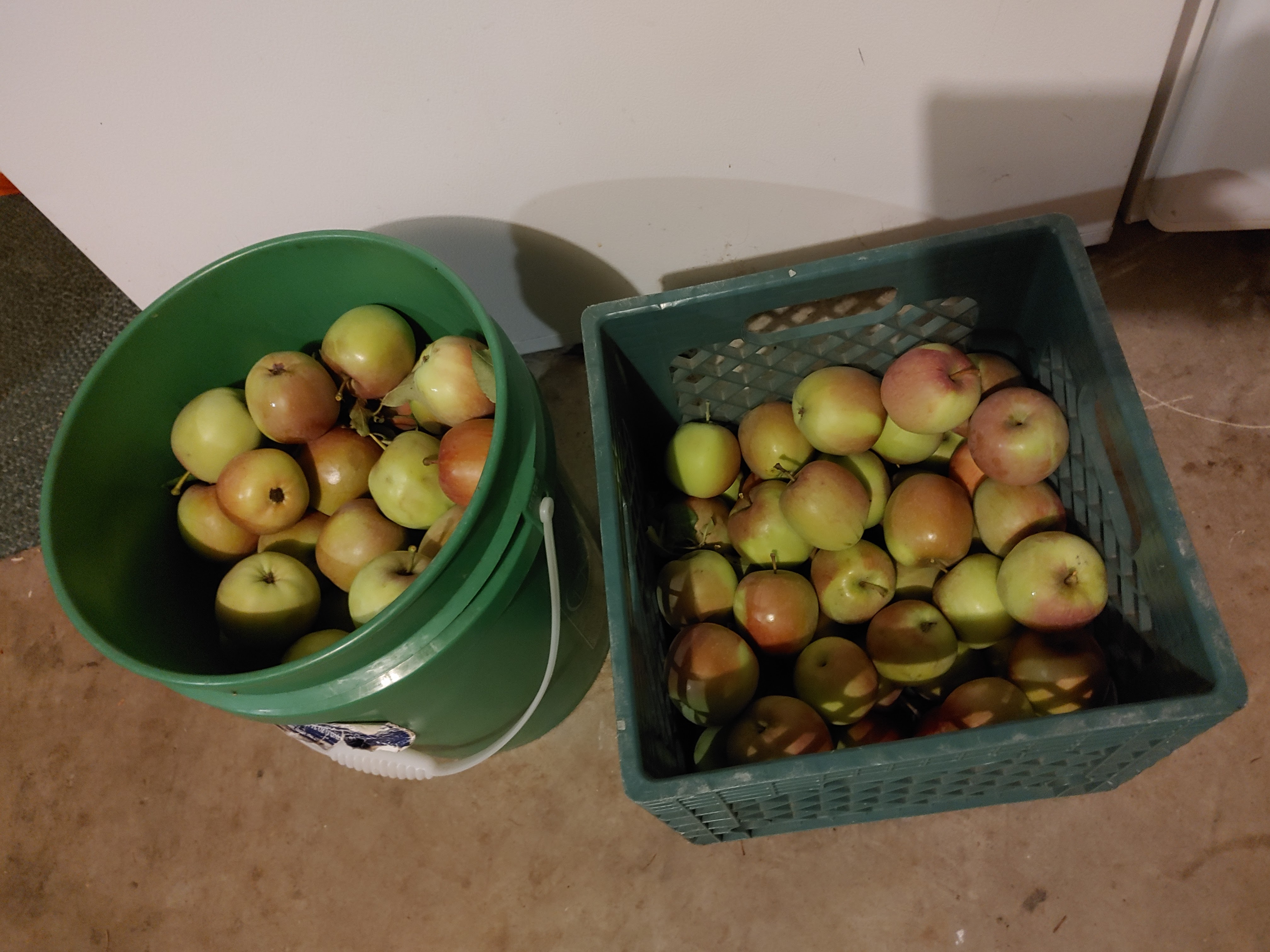 なので今年は小さいりんごは鹿やラクーンやリスに食べてもらう事にした。バケツ4杯分!