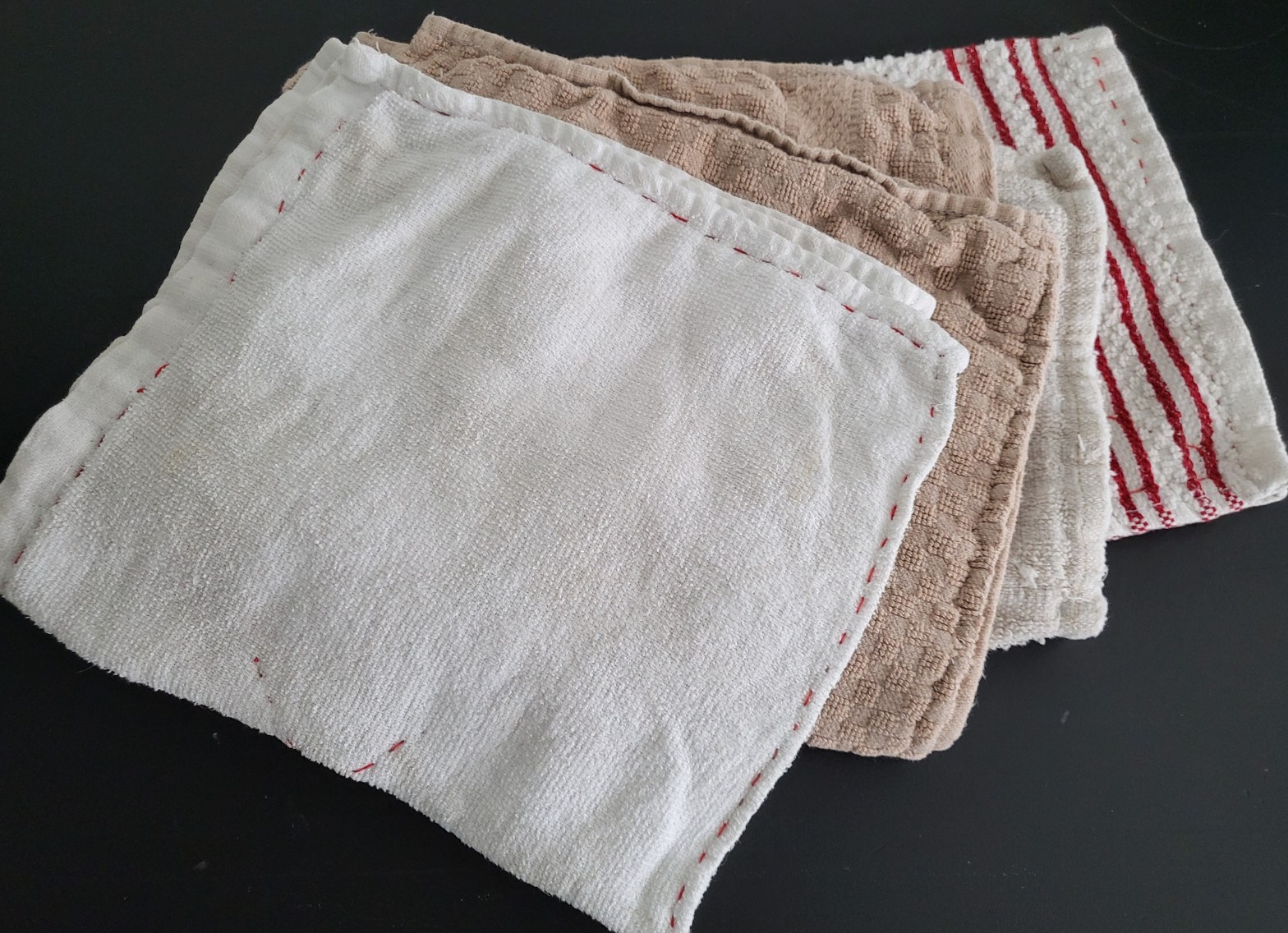使いなれて、いい感じにクタクタになったタオル。色もくすんできているし、でも穴も開いていない。そういうタオルは格下げして雑巾のように使っていたが、雑巾のように使うにしてはどうも大きさ的にも半端だし使い勝手もあまりよろしくない。