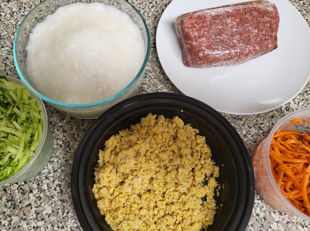 Omega3 Oil、タンパク質のひよこ豆の缶詰はフードプロセッサーにかけて、植物性繊維はブロッコリーと人参をシュレッダーかけたもの。あとは鶏肉、牛ひき肉、とお肉もアレンジしながら少し混ぜてあげよう。