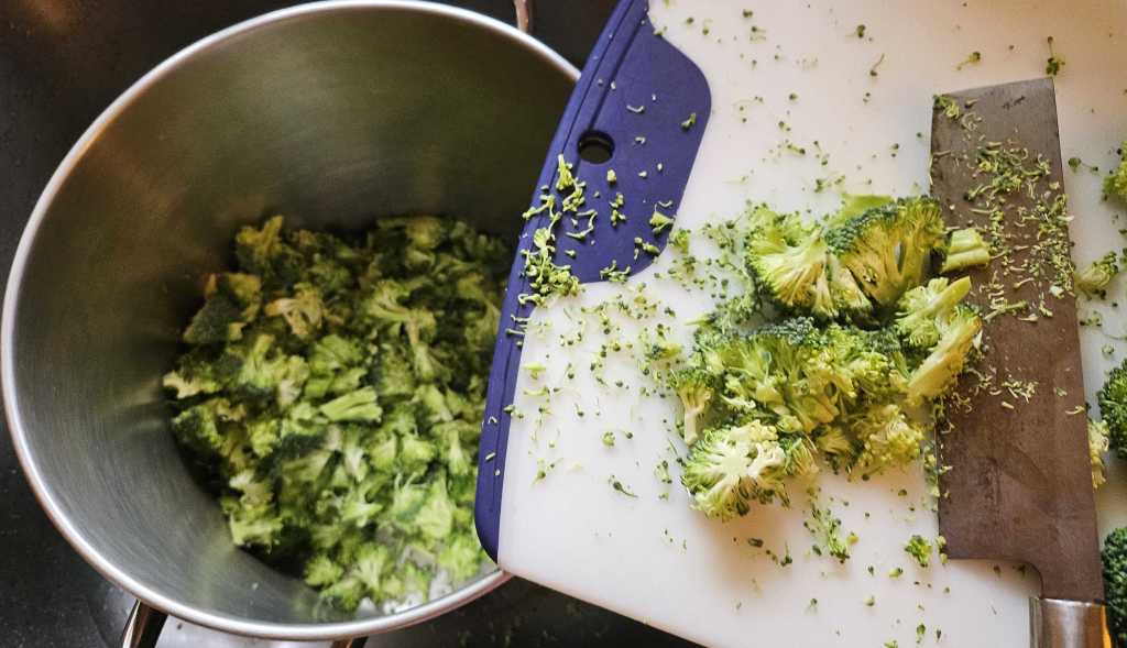 5. ブロッコリーはザクザクと食べやすい大きさに(といっても蒸してしまうので、柔らかくはなる)。