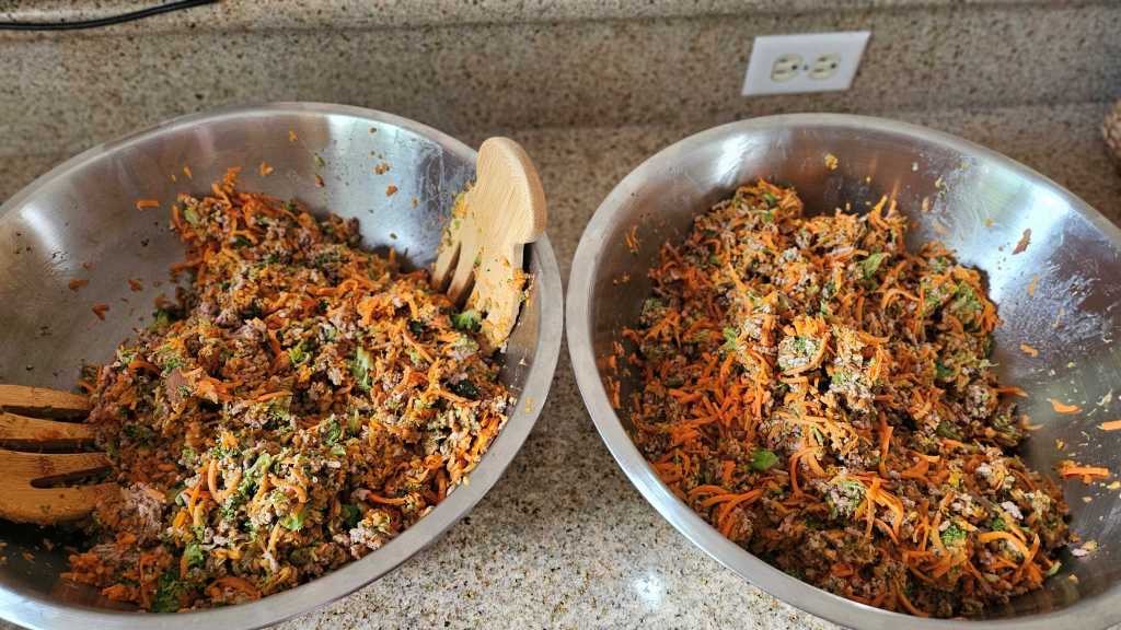 友達もワンコのご飯は手作り。ターキーのひき肉、白菜、レンコン、カボチャ、大根が入っているそうだ。でも彼女のうちのワンコ達はちっこいので、1日に食べる量が2人(2匹)で大さじ4杯程度。