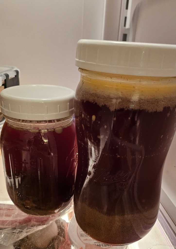 7. 肉汁と蒸し汁は一緒に混ぜて、別の容器に入れ、冷凍保存。グレービーの代わりにこの肉汁を温めてからご飯に少しかけてあげてます。