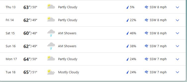 天気予報は当てにならず、24時間内の予報もどうだか・・・でも週間の予報を確認したり。
